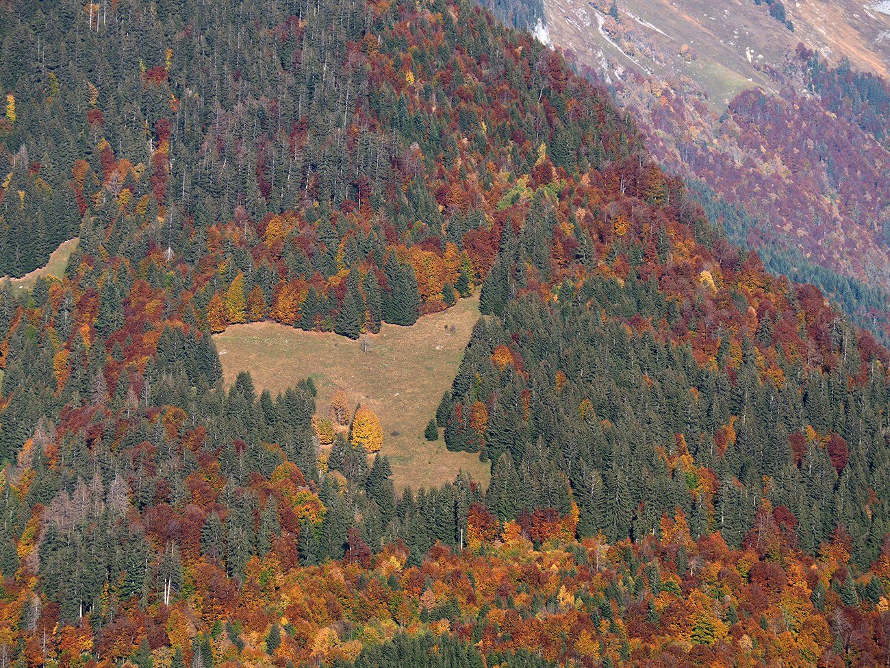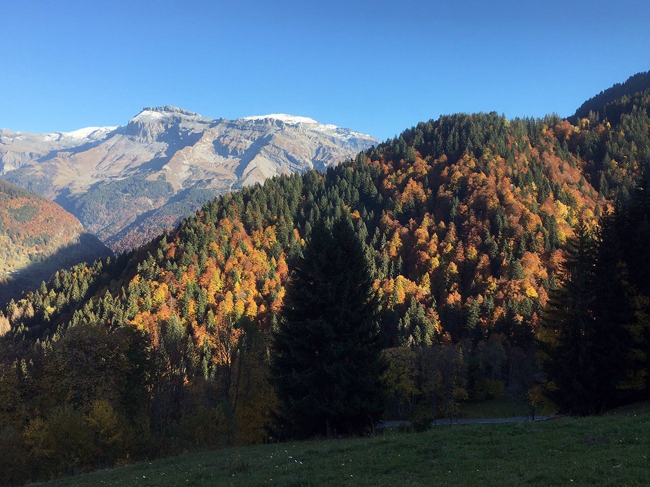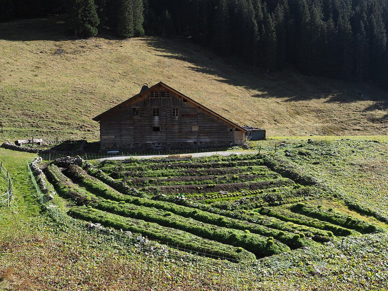 En ce 25 octobre ensoleillé, bovins et ovins ont déjà quitté les alpages de la Combe de Gers, cette calme terrasse située en surplomb de Sixt Fer-à-Cheval, Samoëns et la Vallée du Haut-Giffre.