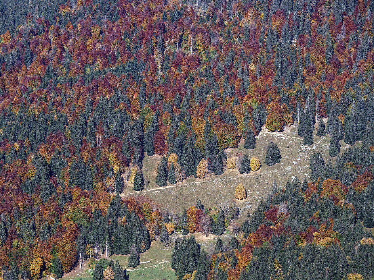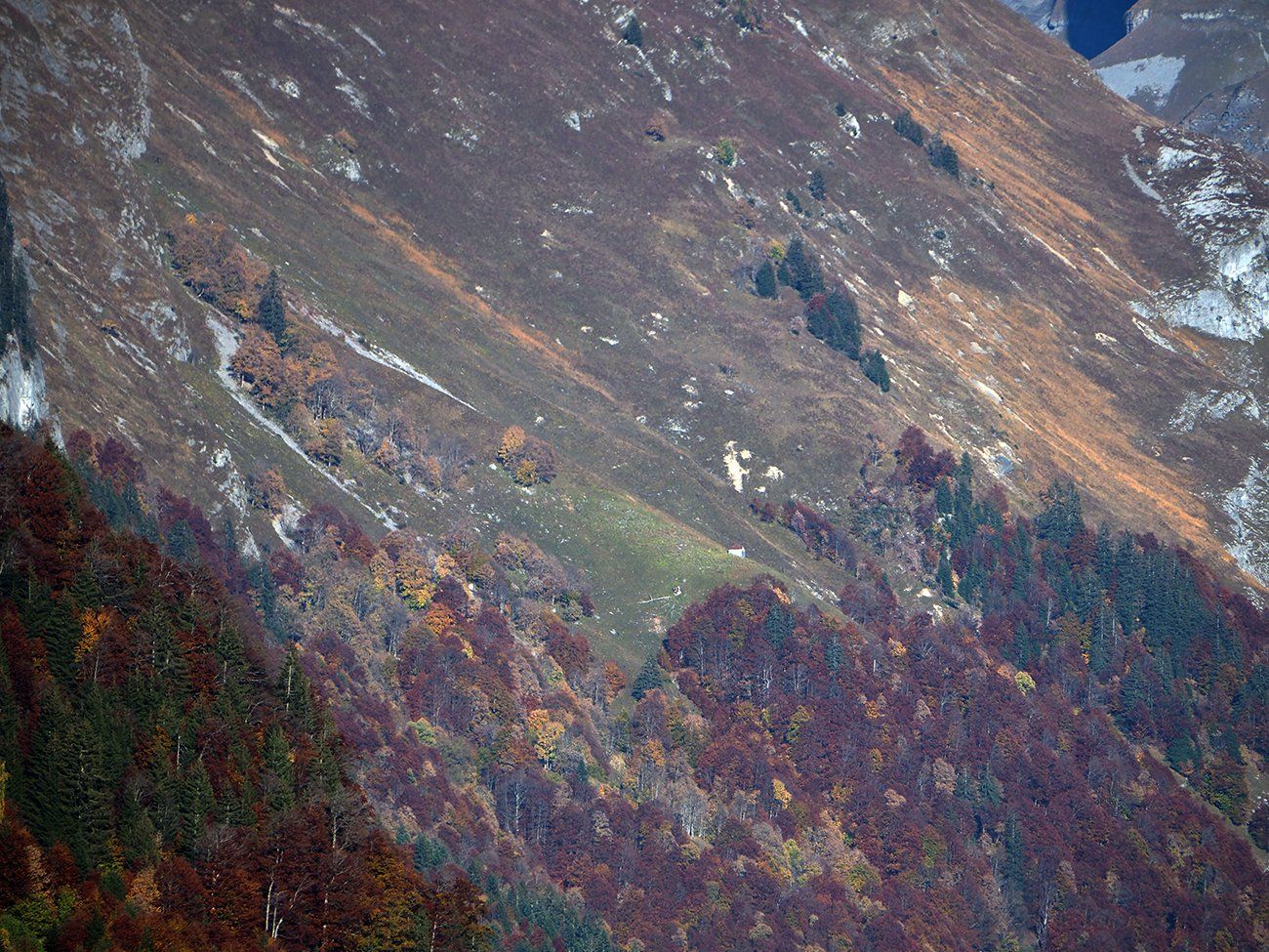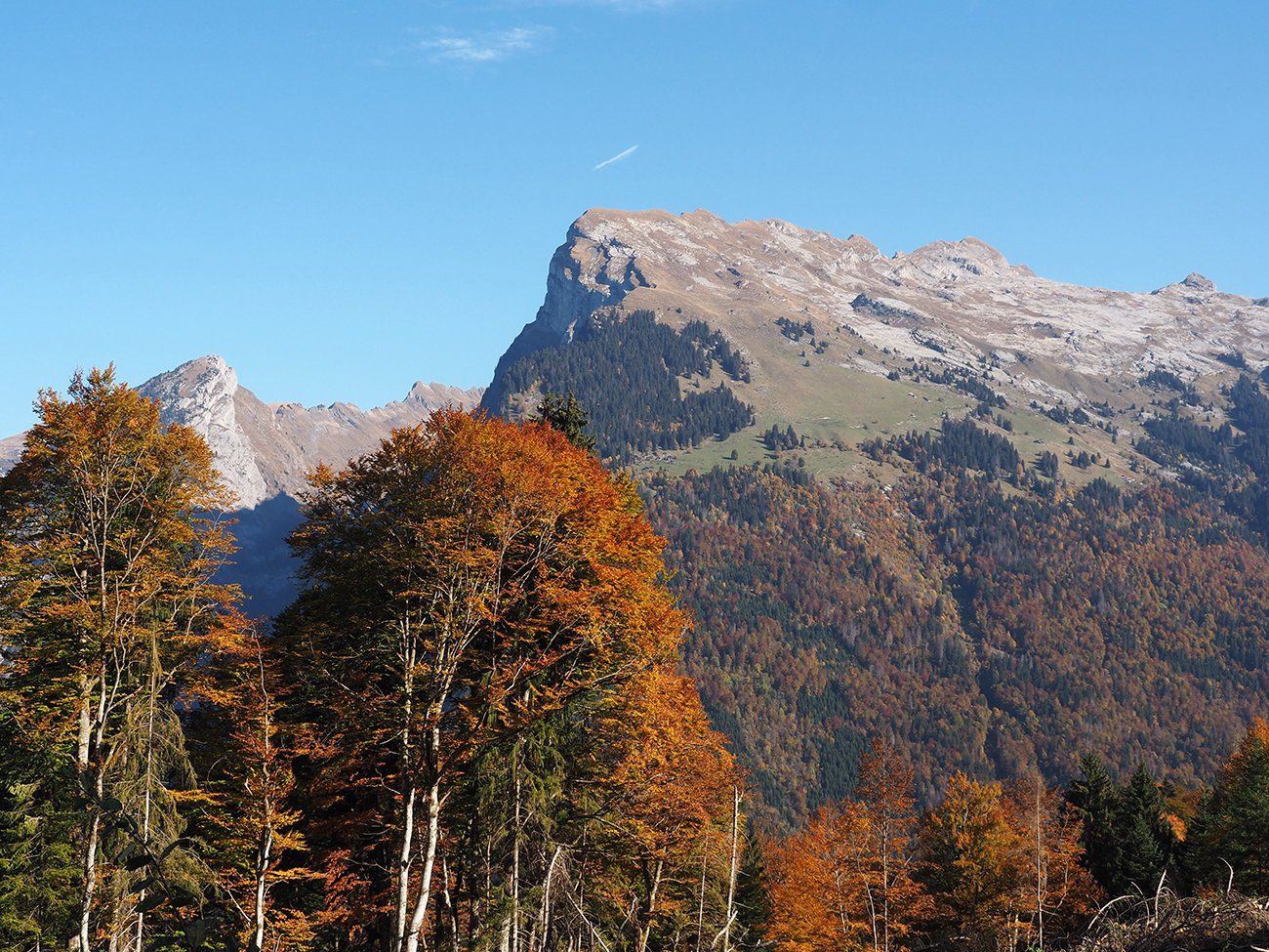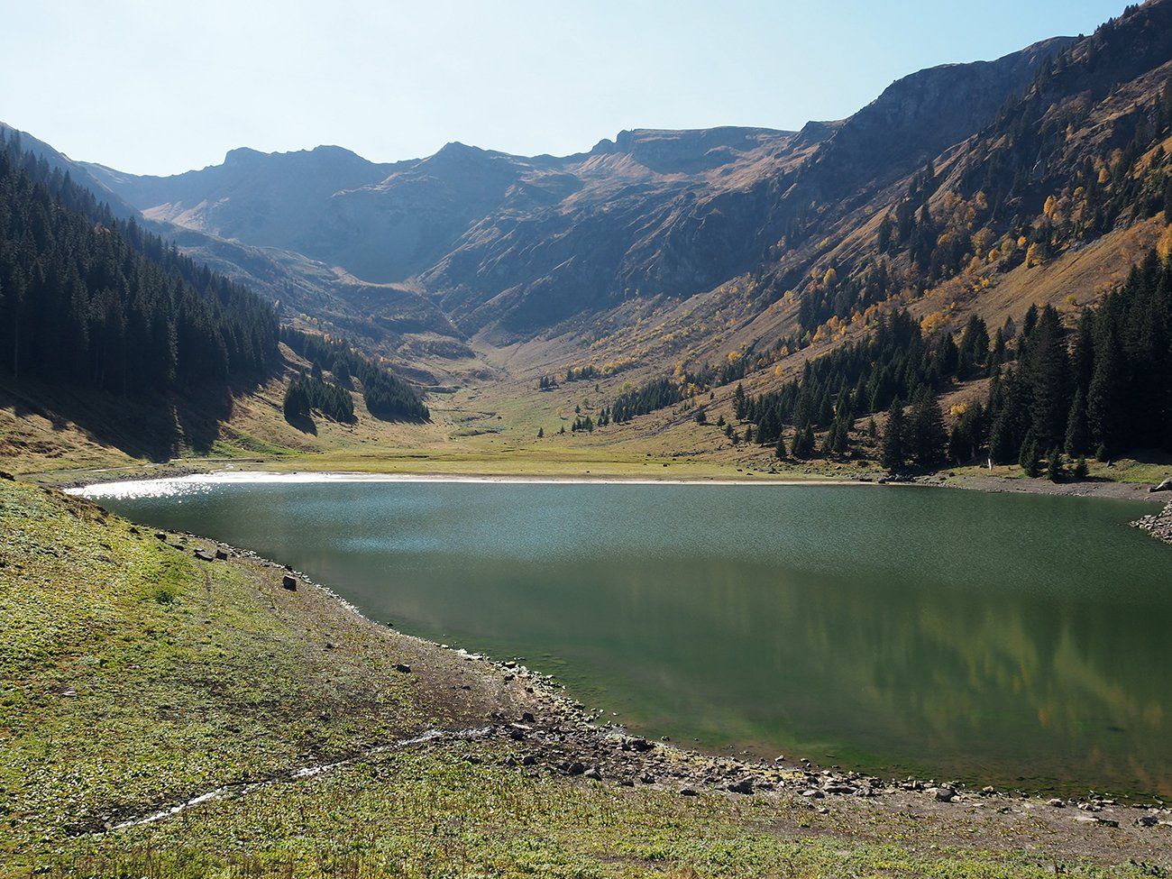 En ce 25 octobre ensoleillé, bovins et ovins ont déjà quitté les alpages de la Combe de Gers, cette calme terrasse située en surplomb de Sixt Fer-à-Cheval, Samoëns et la Vallée du Haut-Giffre.