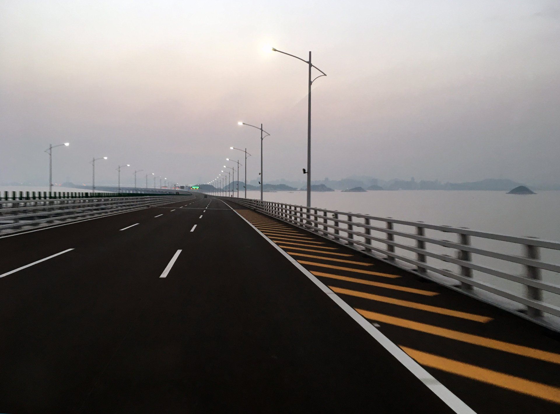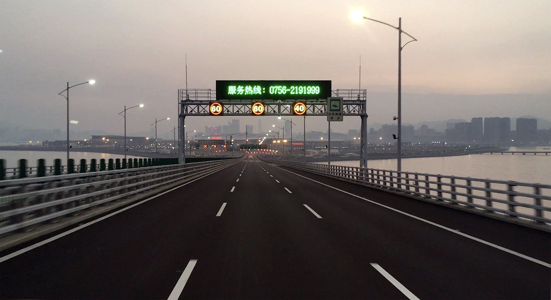 qui franchit l'embouchure de la Grande Baie, le Delta de la Rivière des Perles.