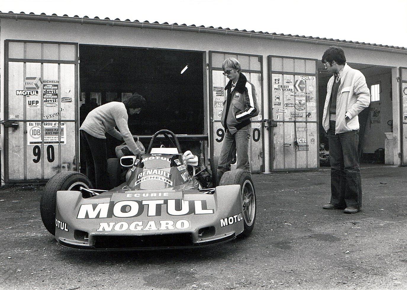 A la fin de l'hiver de 1976, mon ami Patrice Lavergne, nouveau lauréat du Volant Motul, remporté devant Philippe Alliot et Alain Grand, entamait l'entraînement pour sa saison de Formule Renault. A l'occasion d'une de ses premières séances d'essais sur le circuit Paul Armagnac, il était en manque de véhicule et m'avait demandé de le conduire depuis Toulouse à Nogaro. C'est à l'occasion de ce “covoiturage“ (dont le mot n'avait pas encore été inventé), que j'eus l'occasion de faire mes premiers tours de piste sur un circuit automobile fermé, préconisés par Patrice pour reprendre à zéro les premiers rudiments du talon-pointe, du freinage et de la trajectoire. ... Le tout au volant de la R12 TL tout à fait ordinaire prêtée par mon père à cette période post service militaire !