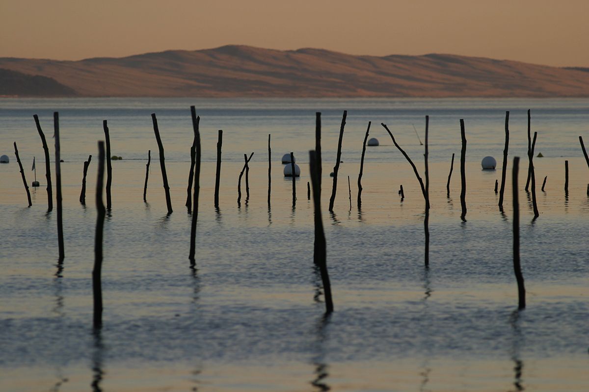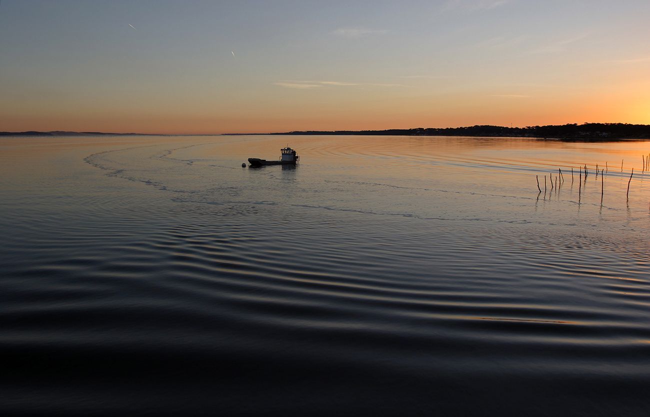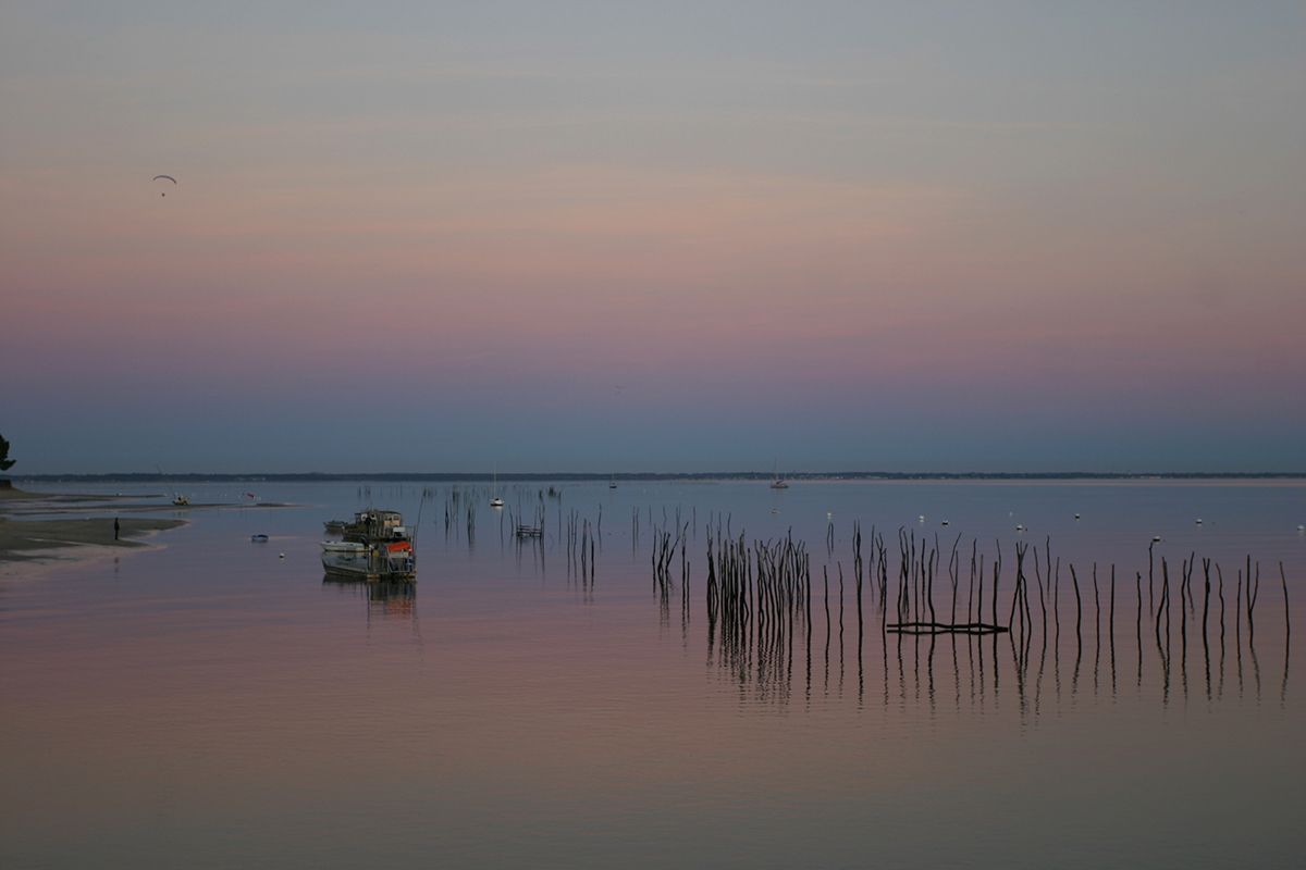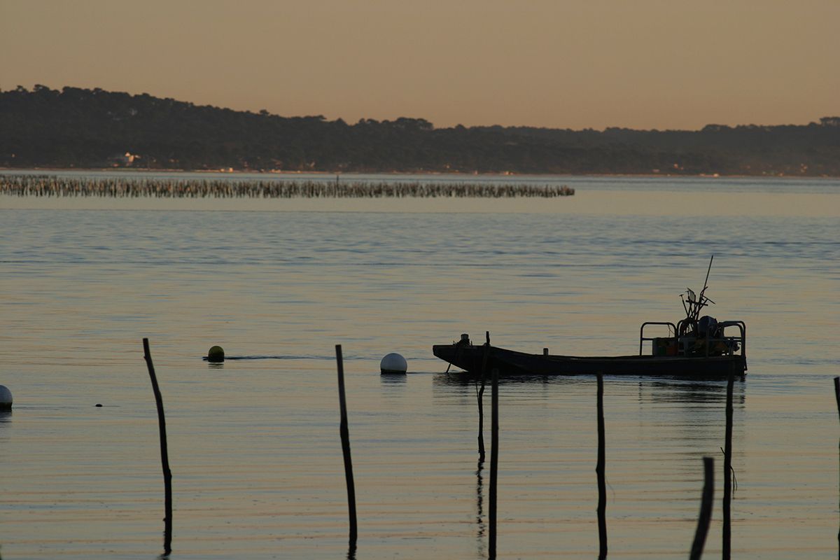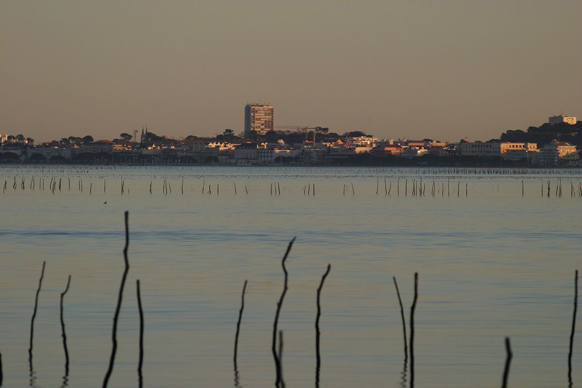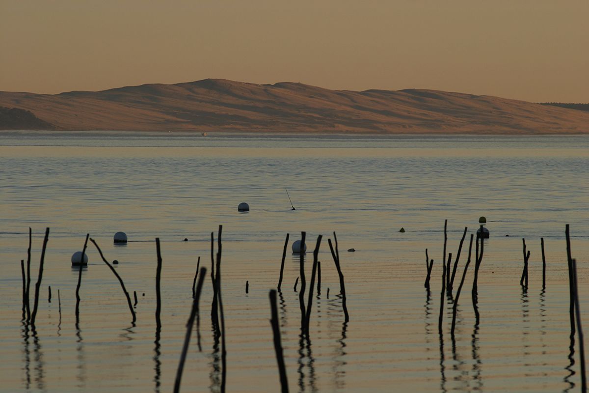 dans la presqu'île girondine du Cap Ferret et sur la rive ouest du Bassin d'Arcachon, avec vue sur la dune du Pilat.