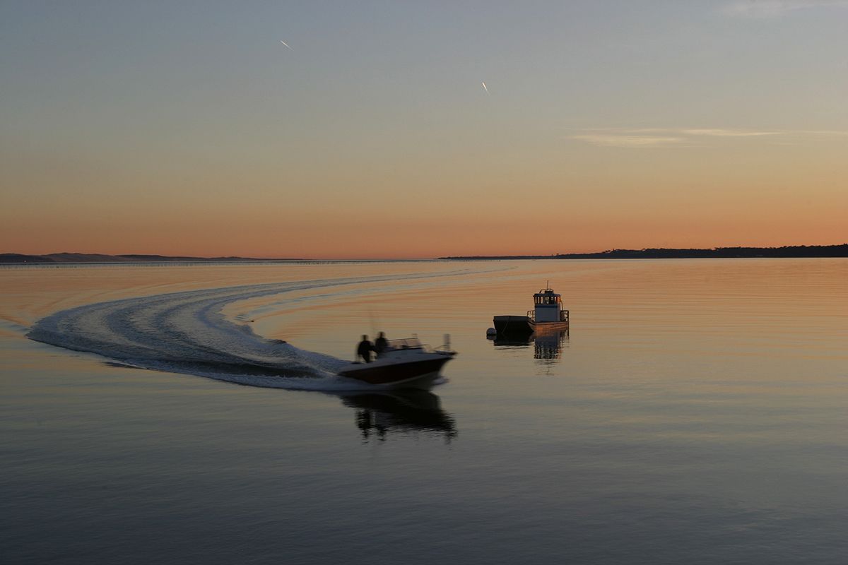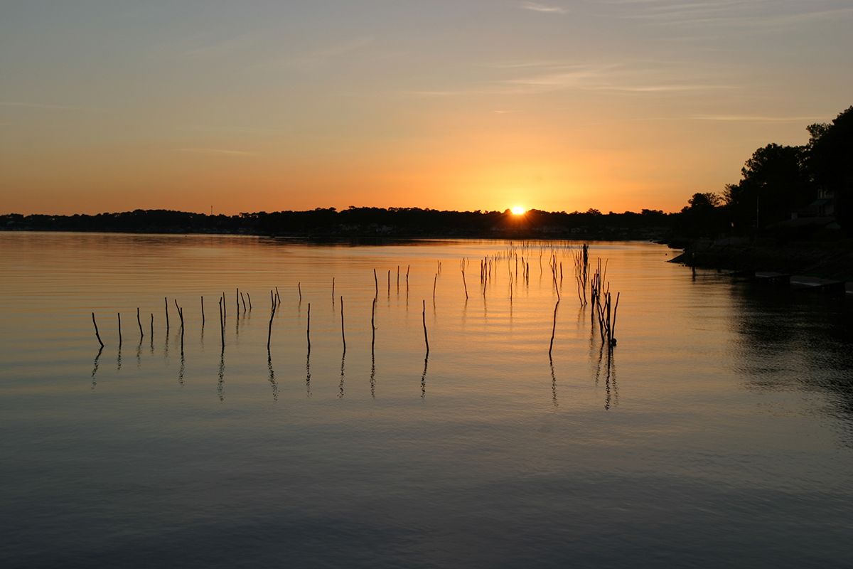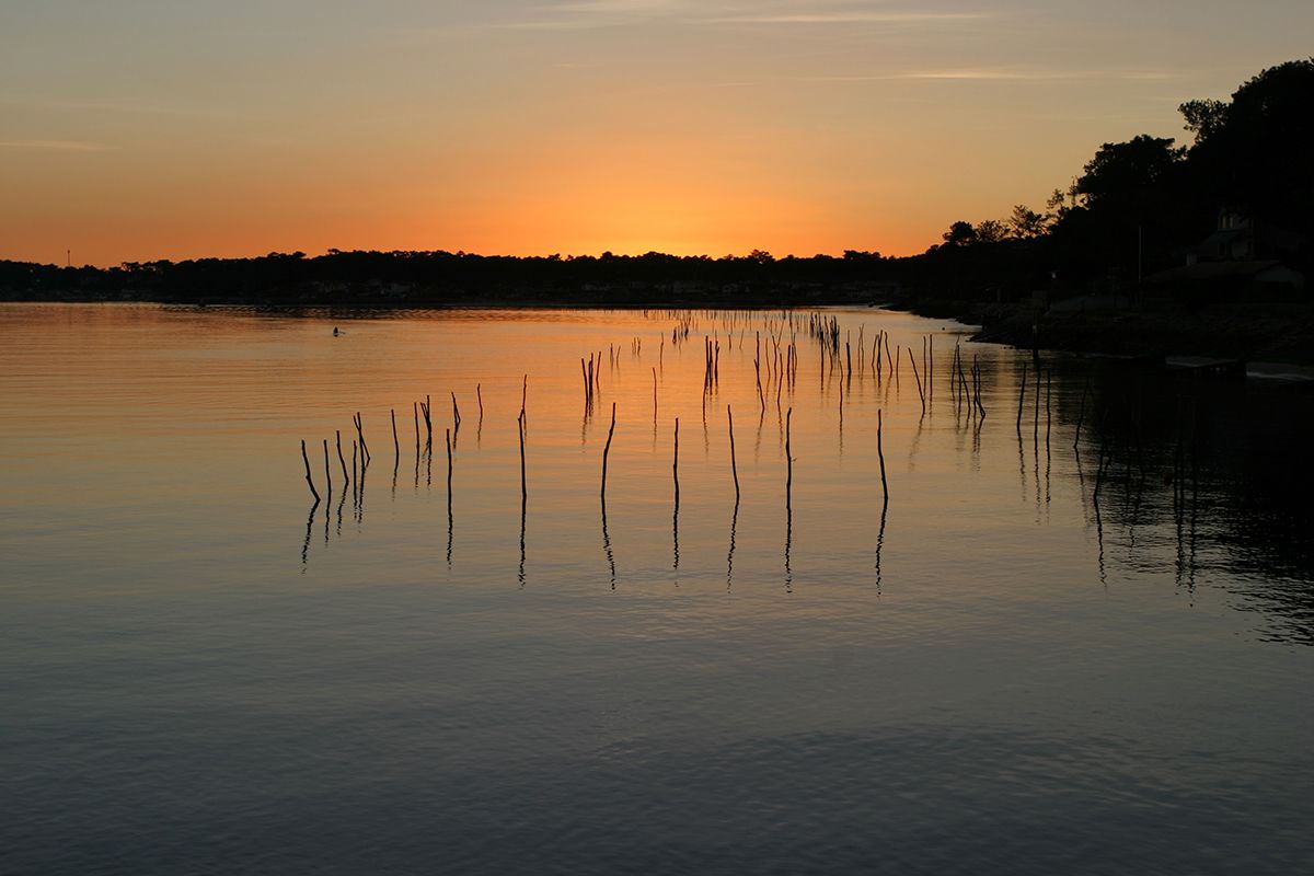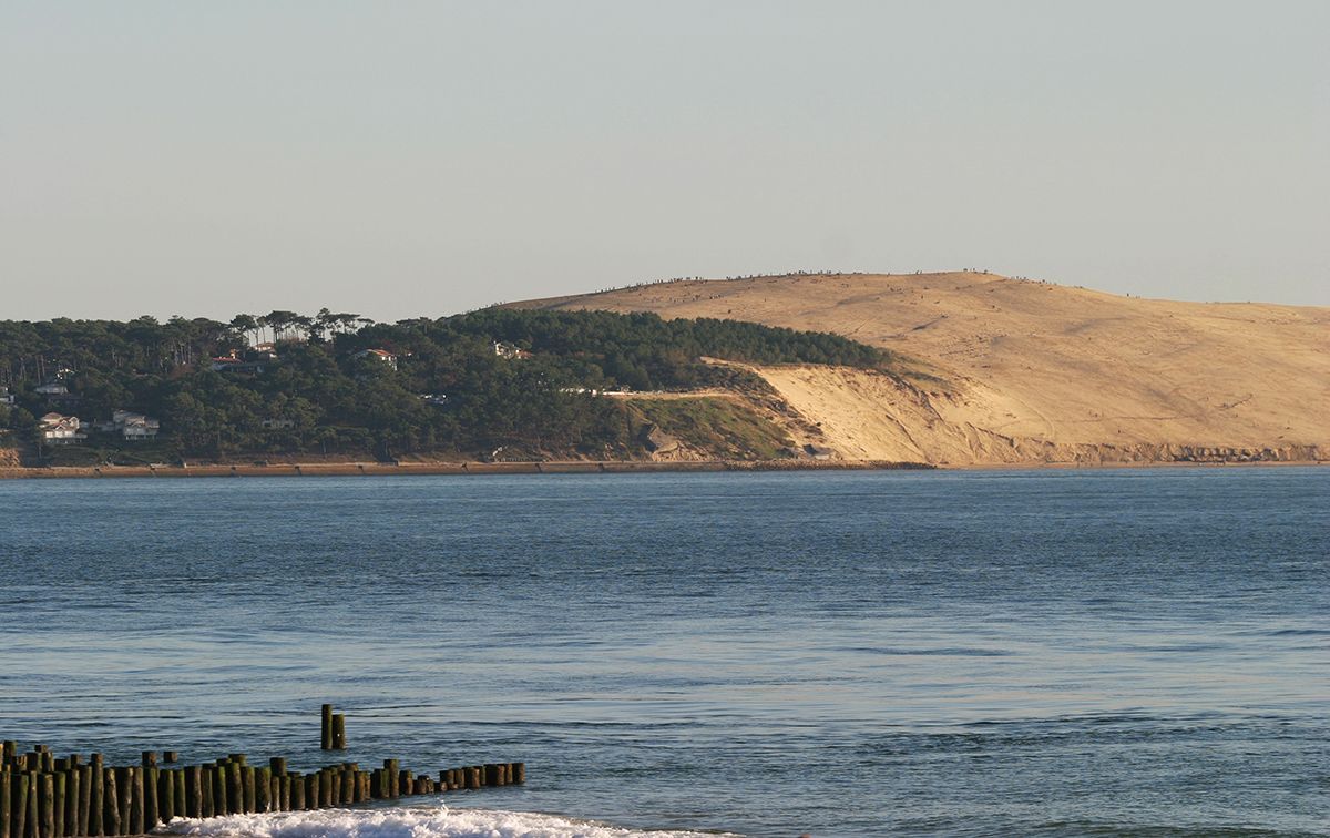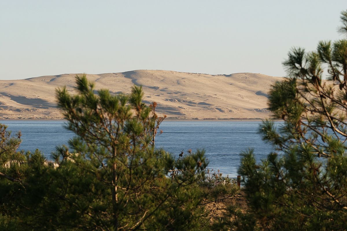 dans la presqu'île girondine du Cap Ferret et sur la rive ouest du Bassin d'Arcachon, avec vue sur la dune du Pilat.